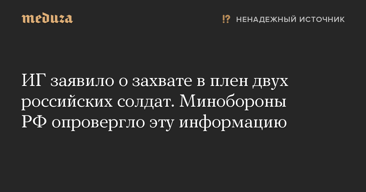 ИГ заявило о захвате в плен двух российских солдат. Минобороны РФ опровергло эту информацию