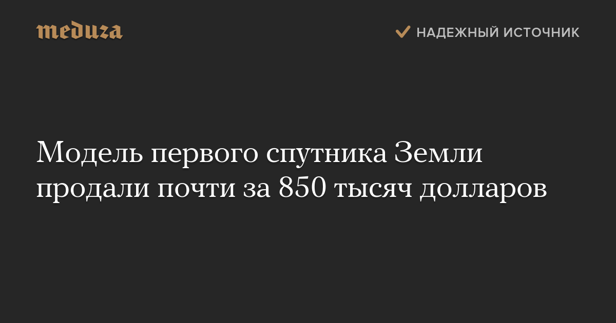 Модель первого спутника Земли продали почти за 850 тысяч долларов