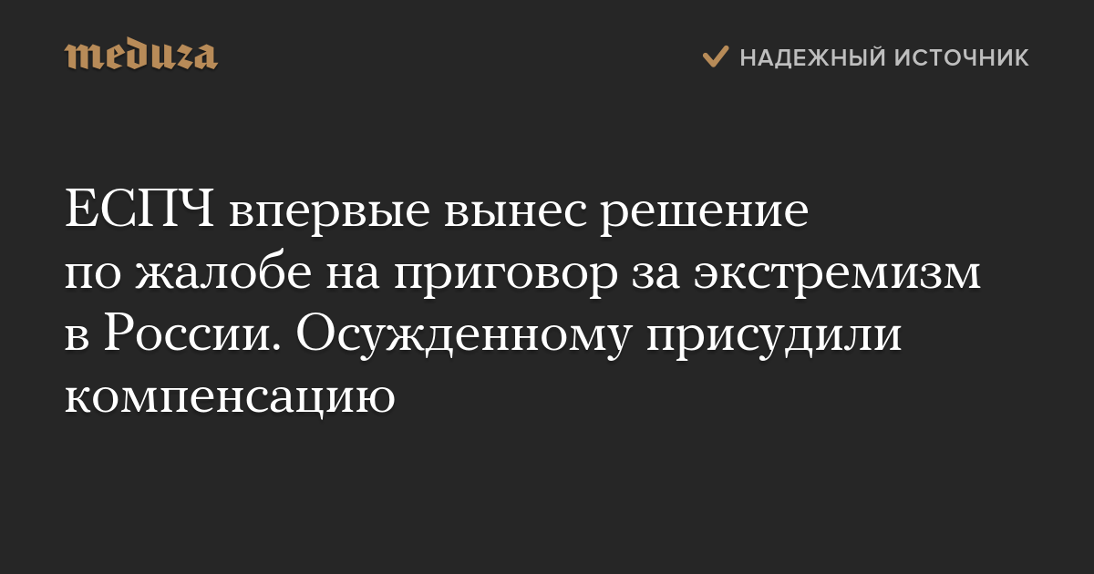 ЕСПЧ впервые вынес решение по жалобе на приговор за экстремизм в России. Осужденному присудили компенсацию