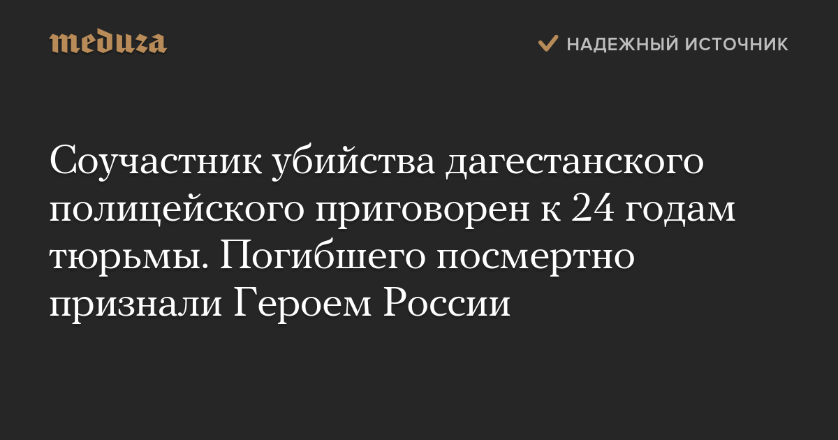 Соучастник убийства дагестанского полицейского приговорен к 24 годам тюрьмы. Погибшего посмертно признали Героем России
