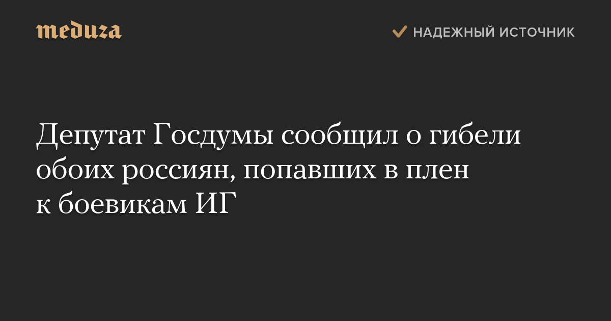 Депутат Госдумы сообщил о гибели обоих россиян, попавших в плен к боевикам ИГ