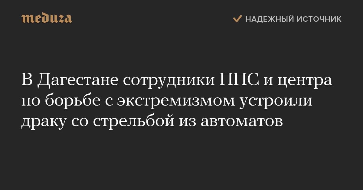 В Махачкале произошла драка между сотрудниками патрульно-постовой службы и полицейскими из центра по борьбе с экстремизмом (центр «Э»). Участники конфликта открыли огонь в воздух из автоматов.