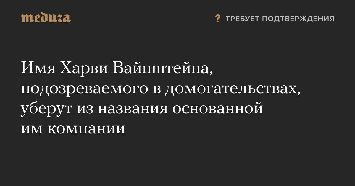 Собеседник агентства не уточнил, какие рассматриваются варианты нового названия, указав лишь, что компания не будет носить имя Вайнштейна.