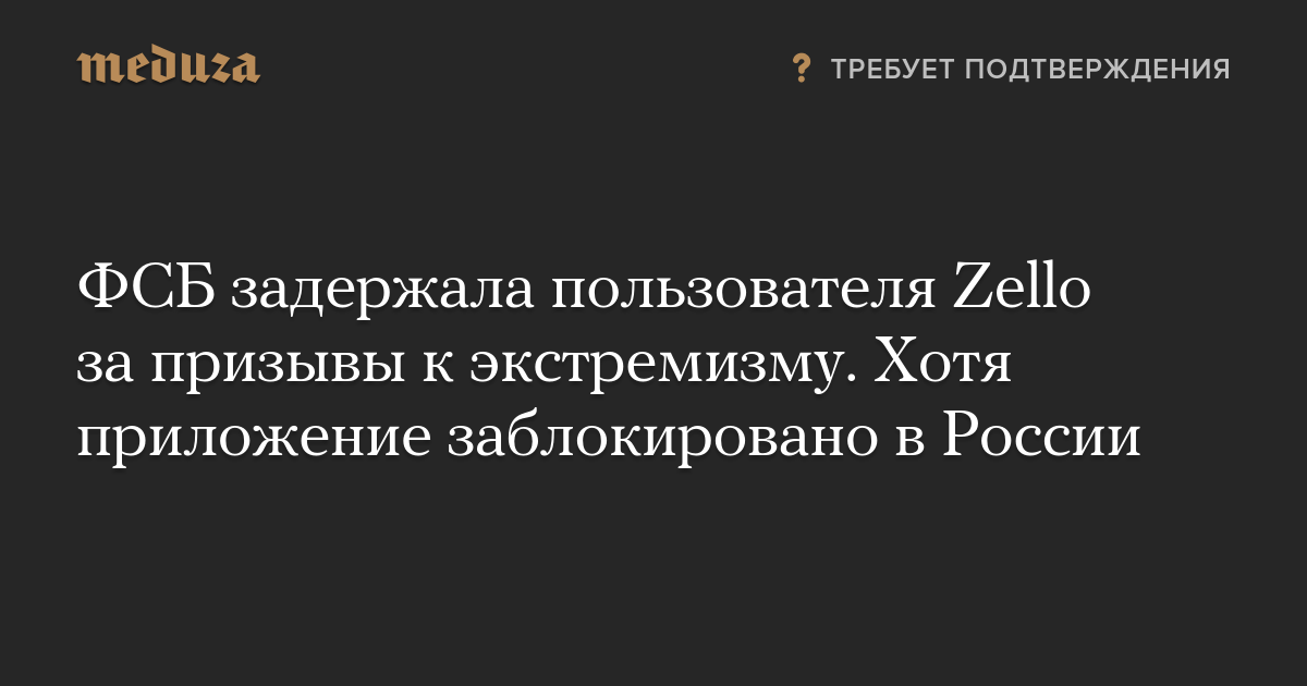 Каким образом задержанный может быть задержан за призывы к экстремизму, если формально Zello заблокировано в России, не уточняется.