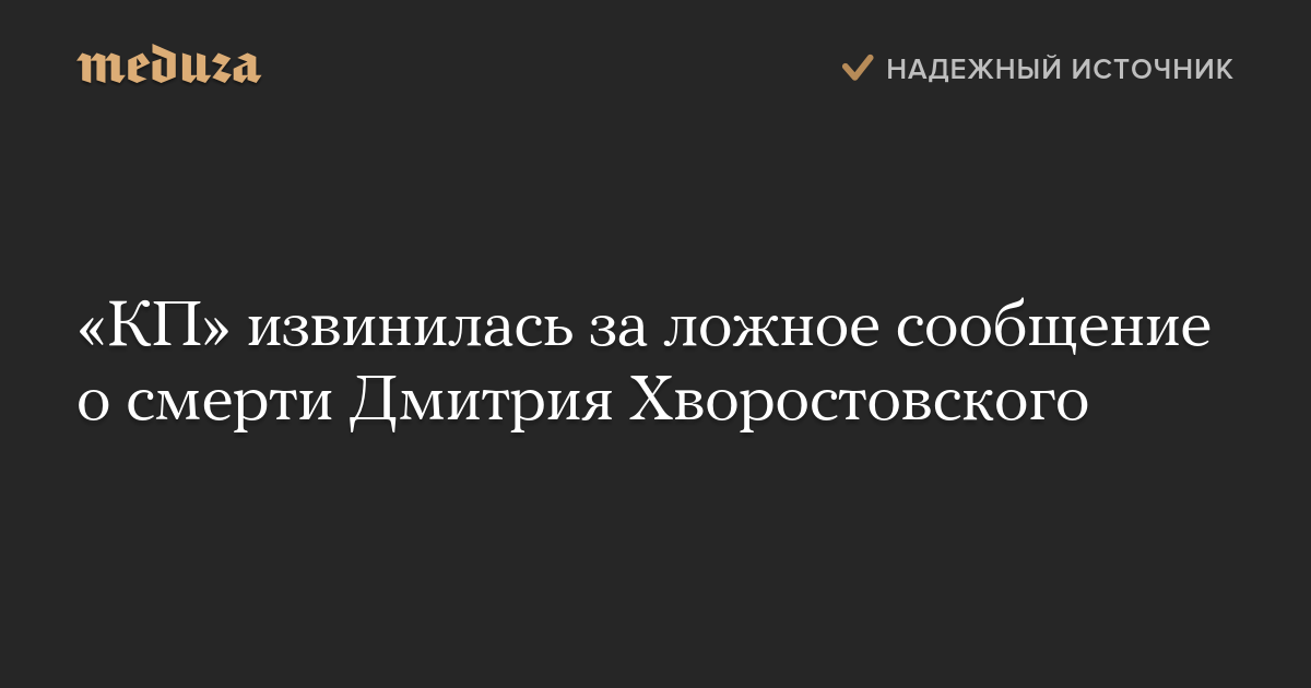 Руководство сайта «Комсомольской правды» пообещало устроить «разбор полетов» из-за опубликованного в ночь на 11 октября ложного сообщения о смерти оперного певца Дмитрия Хворостовского и принесло извинения за случившееся.