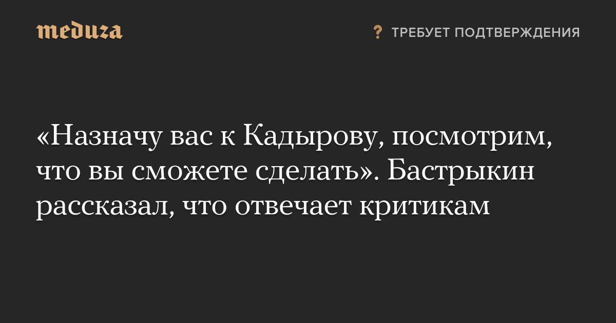 «Назначу вас к Кадырову, посмотрим, что вы сможете сделать». Бастрыкин рассказал, что отвечает критикам