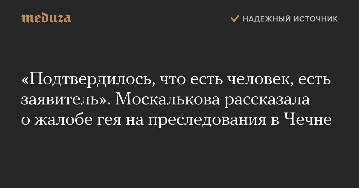 «Подтвердилось, что есть человек, есть заявитель». Москалькова рассказала о жалобе гея на преследования в Чечне