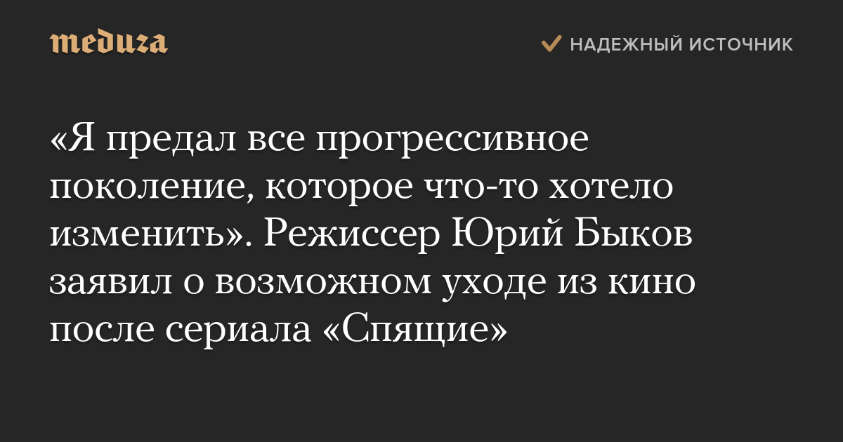 «Я предал все прогрессивное поколение, которое что-то хотело изменить». Режиссер Юрий Быков заявил о возможном уходе из кино после сериала «Спящие»