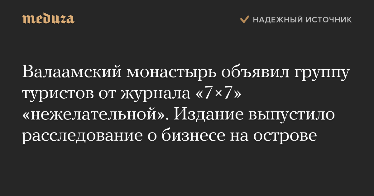 Валаамский монастырь объявил группу туристов от журнала «7×7» «нежелательной». Издание выпустило расследование о бизнесе на острове