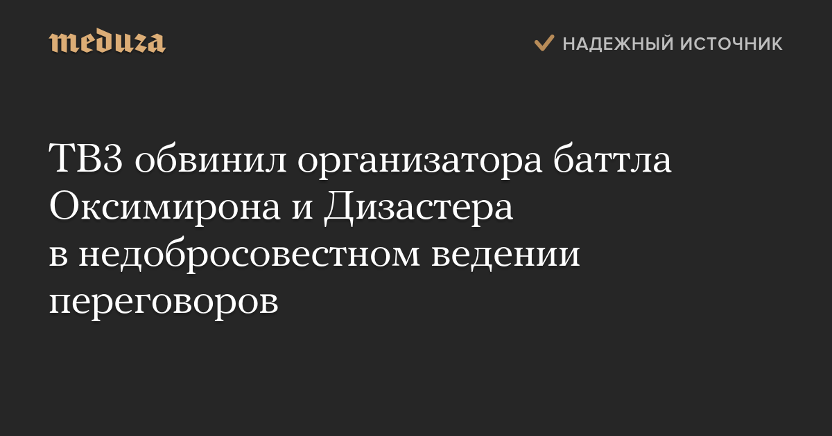 ТВ3 обвинил организатора баттла Оксимирона и Дизастера в недобросовестном ведении переговоров из-за отказа продать права на показ