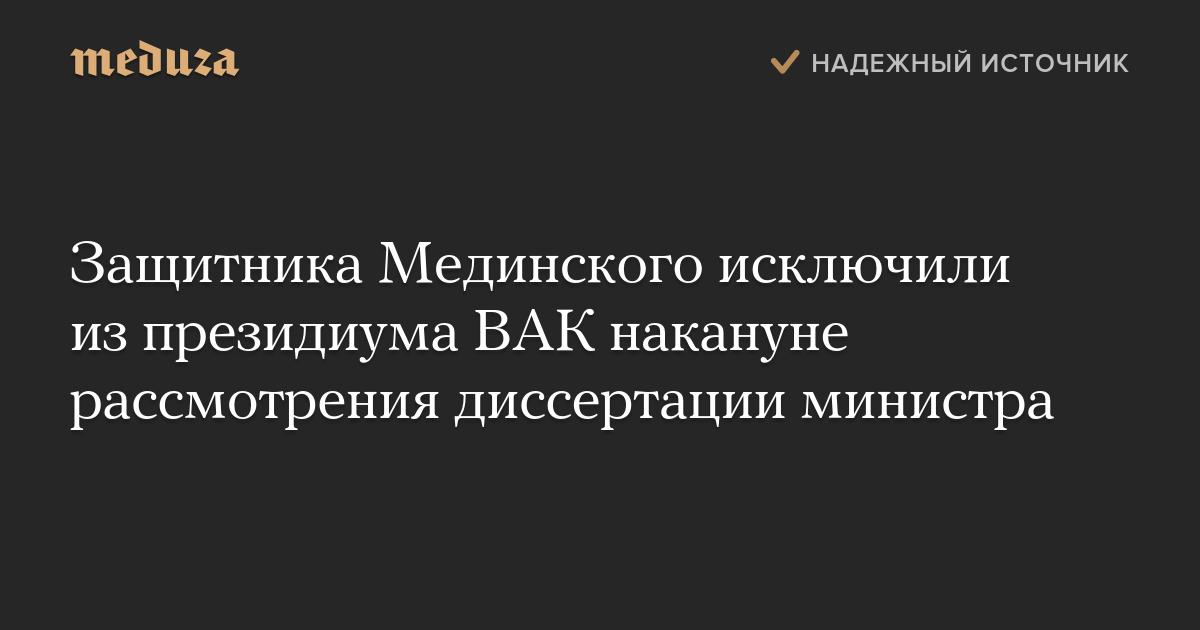 Защитника Мединского исключили из президиума ВАК накануне рассмотрения диссертации министра