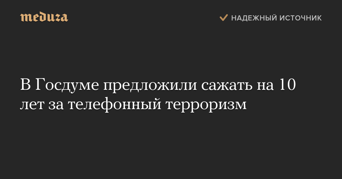 В Госдуме предложили сажать на 10 лет за телефонный терроризм