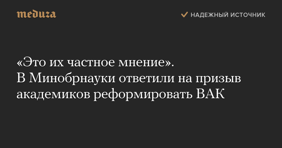 «Это их частное мнение». В Минобрнауки ответили на призыв академиков реформировать ВАК