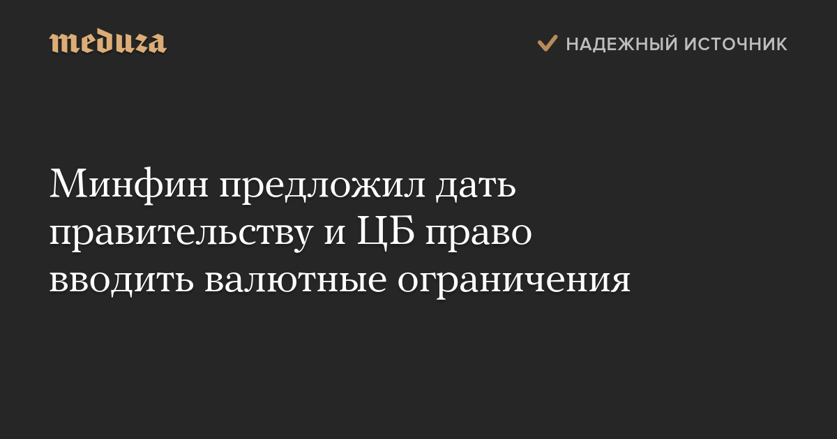 Министерство финансов предлагает наделить правительство и Банк России правом в кризис вводить жесткие валютные ограничения, пишут «Ведомости».