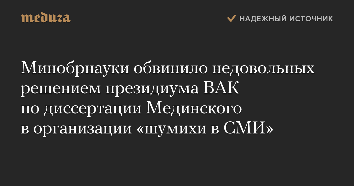 Минобрнауки обвинило недовольных решением президиума ВАК по диссертации Мединского в организации «шумихи в СМИ»