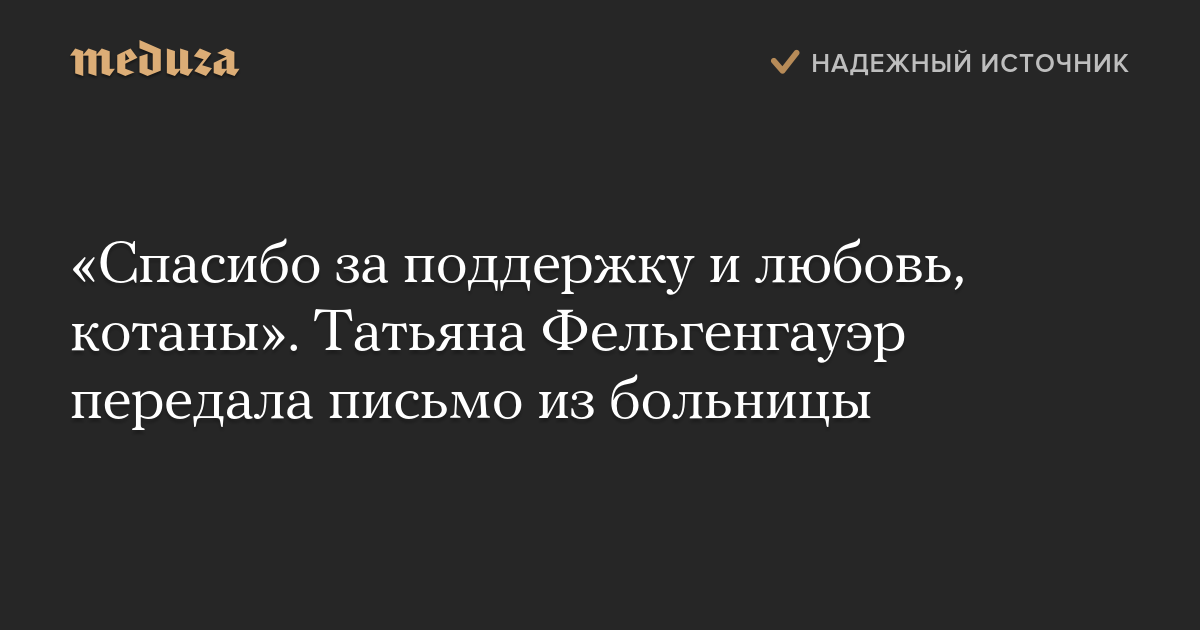 «Спасибо за поддержку и любовь, котаны». Татьяна Фельгенгауэр передала письмо из больницы