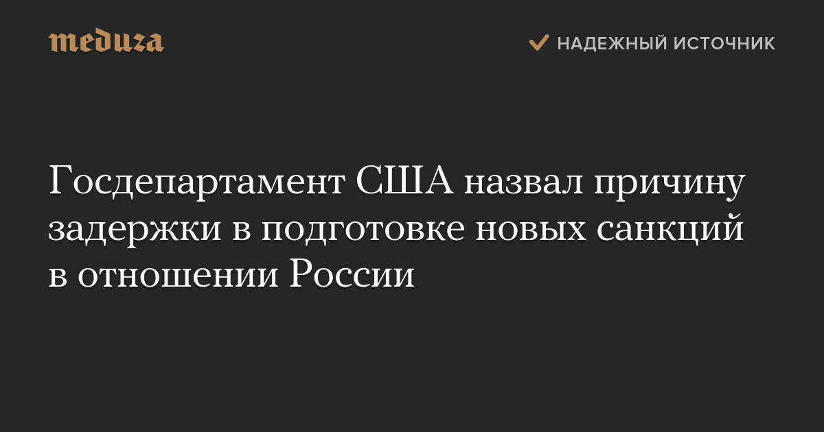 Госдепартамент США назвал причину задержки в подготовке новых санкций в отношении России