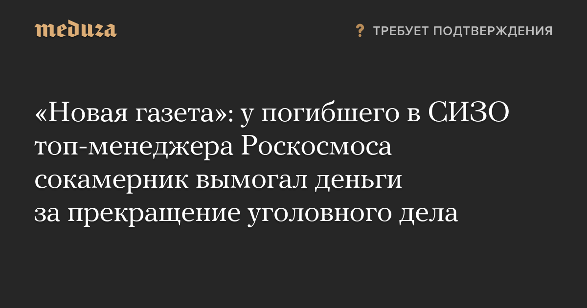 «Новая газета»: у погибшего в СИЗО топ-менеджера Роскосмоса сокамерник вымогал деньги за прекращение уголовного дела