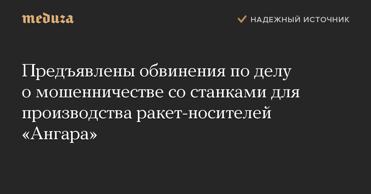 Правоохранительные органы предъявили обвинения по делу о мошенничестве при закупке оборудования в рамках модернизации производства ракет-носителей «Ангара», пишет «Коммерсант».