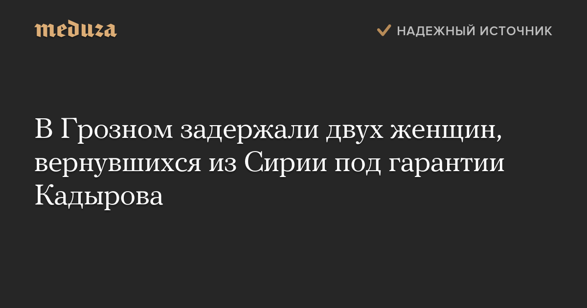 Дагестанская полиция задержала в Грозном двух уроженок Дагестана, которые вернулись из Сирии в Россию под гарантии главы Чечни Рамзана Кадырова. Женщинам обещали, что их не станут привлекать к ответственности по статье об участии в незаконных вооруженных формированиях.