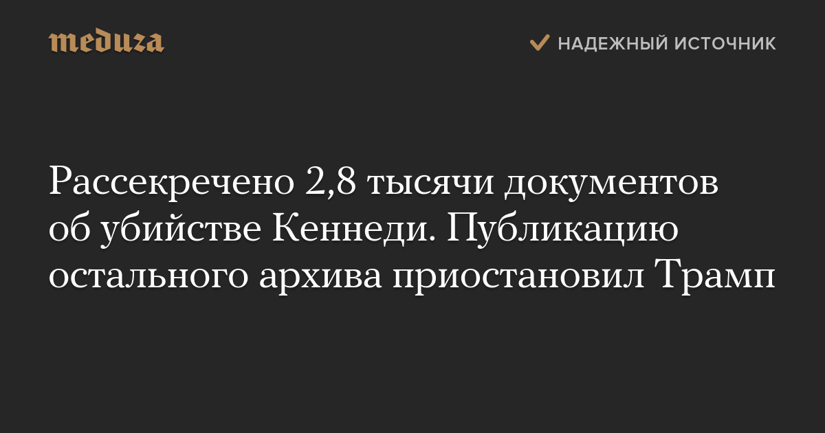 Рассекречено 2,8 тысячи документов об убийстве Кеннеди. Публикацию остального архива приостановил Трамп