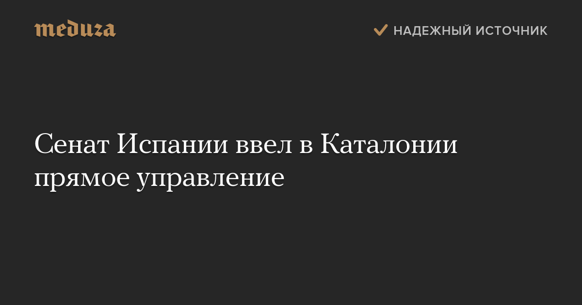 Сенат Испании проголосовал за отстранение руководства Каталонии от власти и введение в регионе прямого управления из Мадрида. За это проголосовали 214 сенаторов, против — 47, один воздержался.