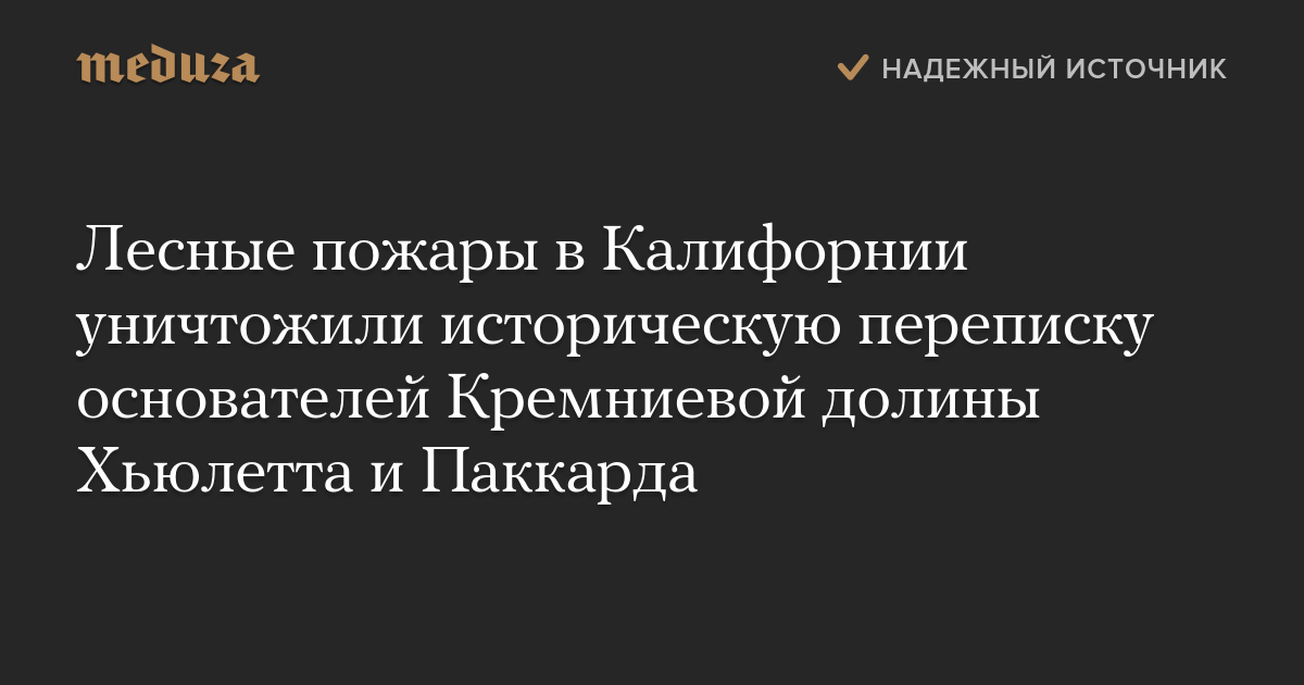 Лесные пожары в Калифорнии уничтожили историческую переписку основателей Кремниевой долины Хьюлетта и Паккарда