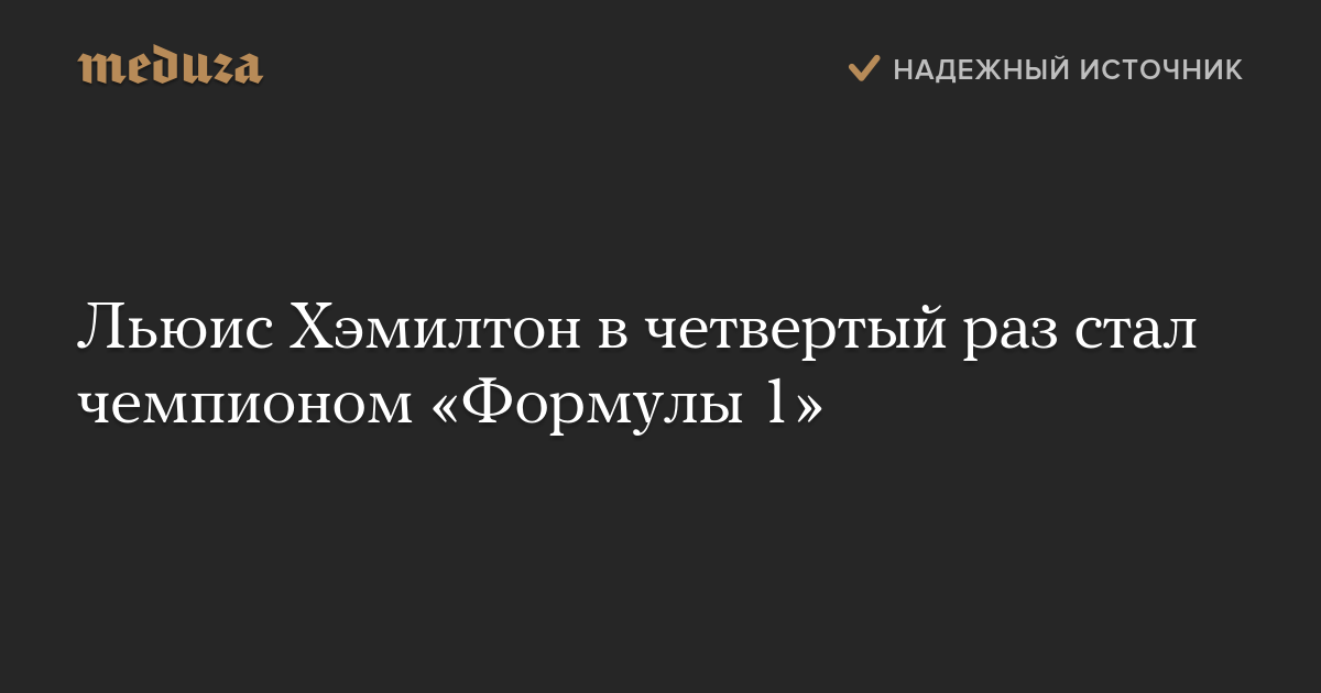 Британский пилот команды Mercedes Льюис Хэмилтон в четвертый раз в карьере стал чемпионом «Формулы 1».