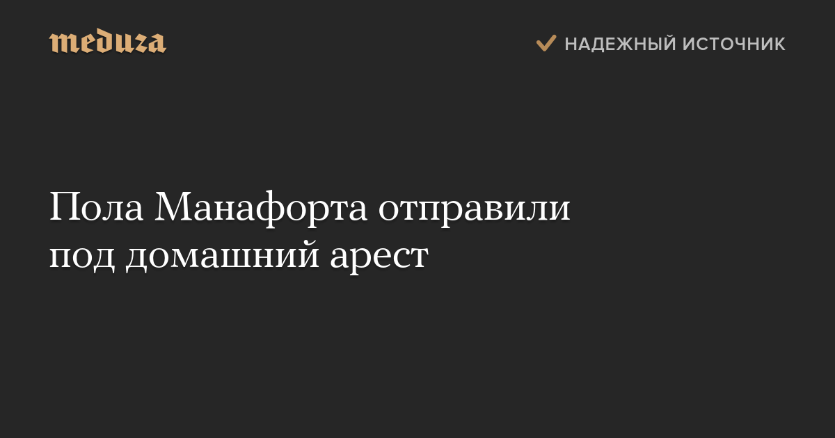 Бывший глава штаба Дональда Трампа Пол Манафорт отправлен под домашний арест. Суд решил применить эту меру пресечения, чтобы Манафорт не покинул страну. Он сдал свой паспорт. Под домашний арест отправлен и деловой партнер Пола Манафорта Рик Гейтс, с которым они проходят по одному делу.