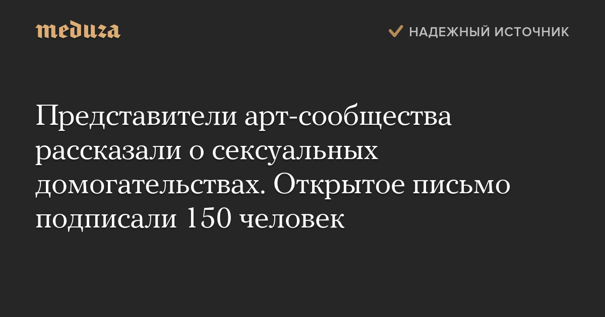 Представители арт-сообщества рассказали о сексуальных домогательствах. Открытое письмо подписали 150 человек