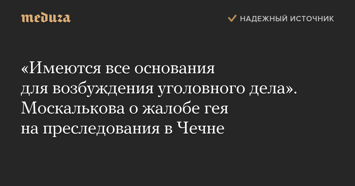 «Имеются все основания для возбуждения уголовного дела». Москалькова о жалобе гея на преследования в Чечне