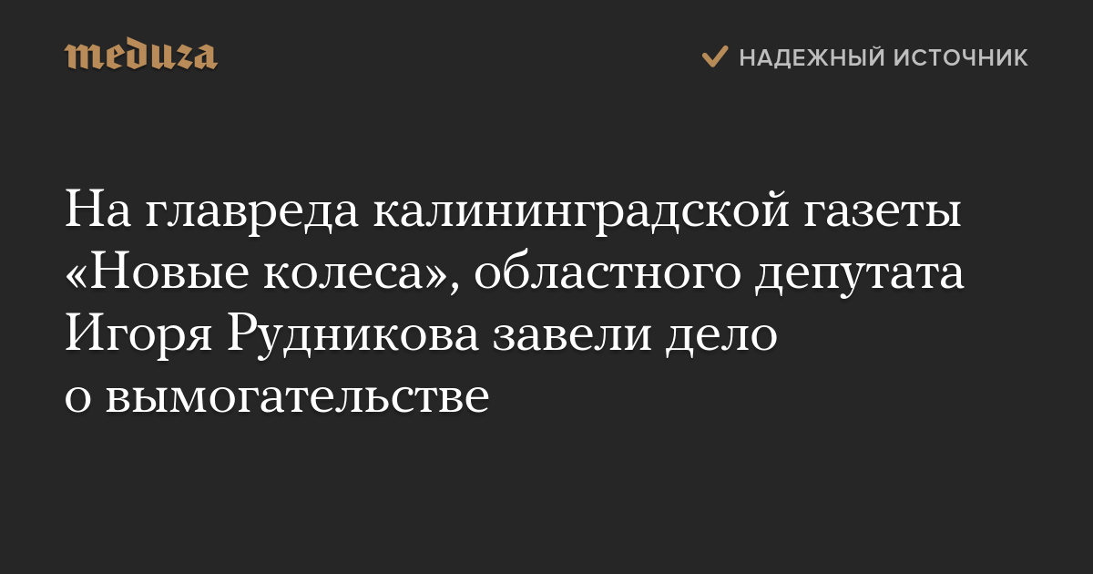На главреда калининградской газеты «Новые колеса», областного депутата Игоря Рудникова завели дело о вымогательстве