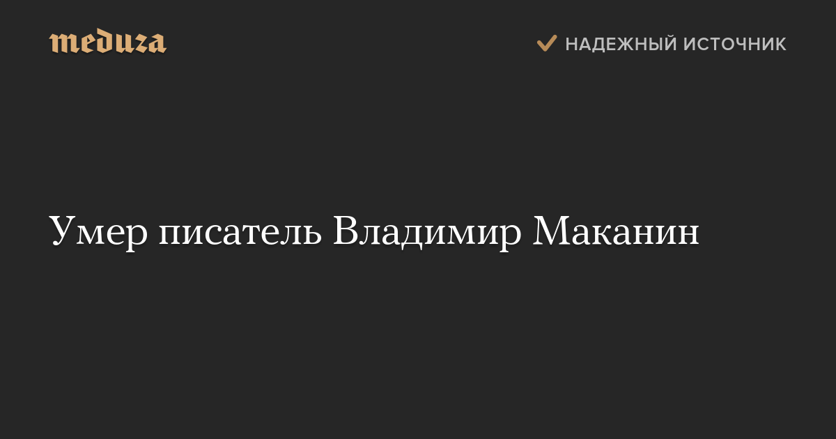 Умер писатель Владимир Маканин. Об этом «Медузе» сообщили в пресс-службе издательства «Эксмо».