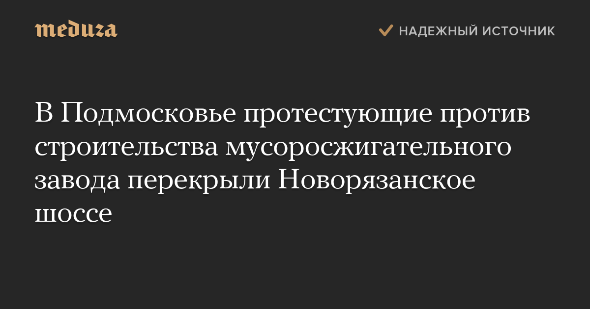 В Подмосковье протестующие против строительства мусоросжигательного завода перекрыли Новорязанское шоссе