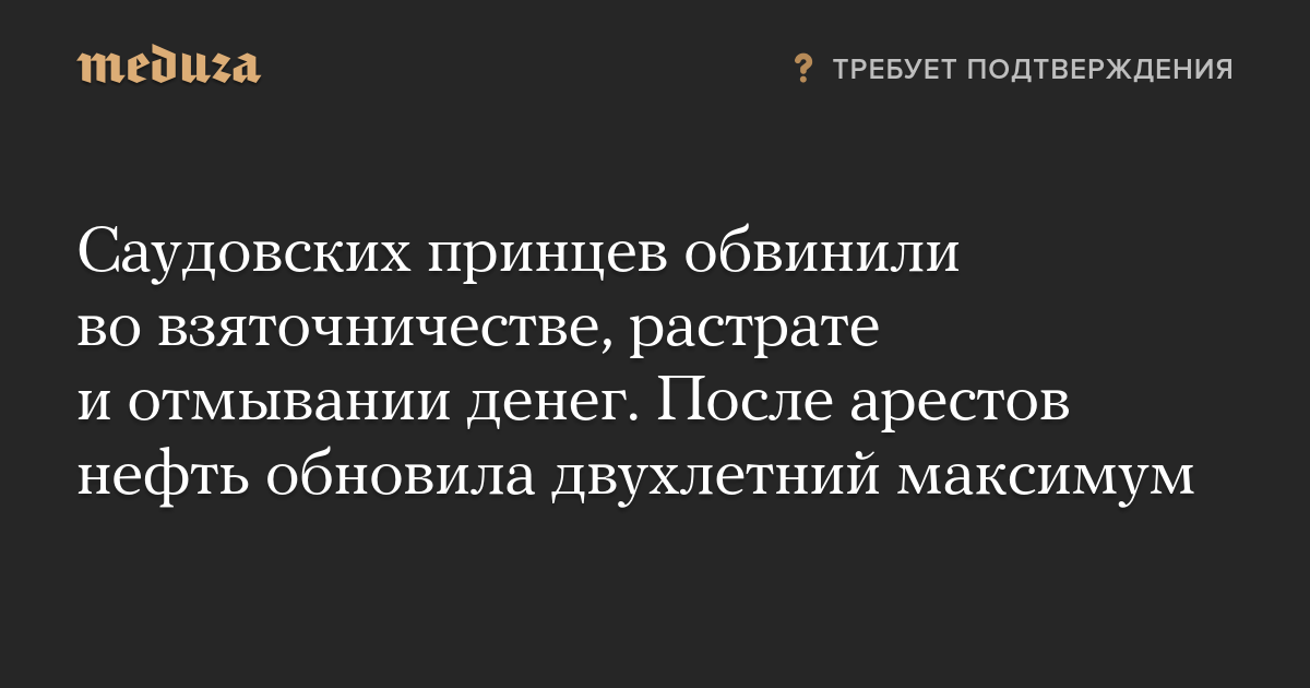 Саудовских принцев обвинили во взяточничестве, растрате и отмывании денег. После арестов нефть обновила двухлетний максимум