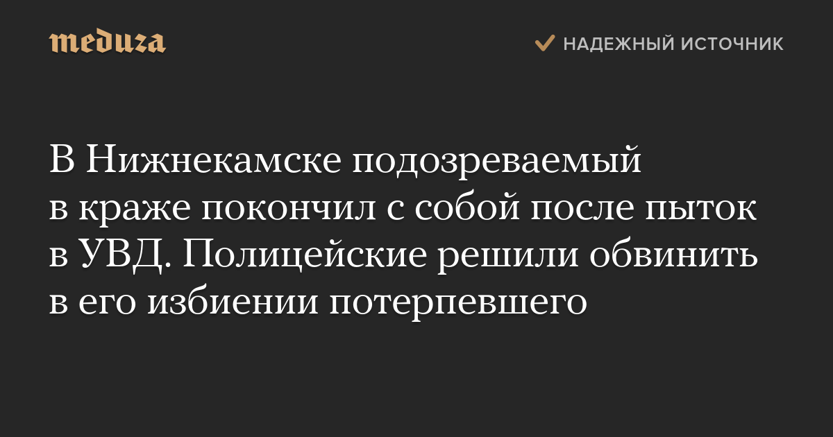 В Нижнекамске подозреваемый в краже покончил с собой после пыток в УВД. Полицейские решили обвинить в его избиении потерпевшего