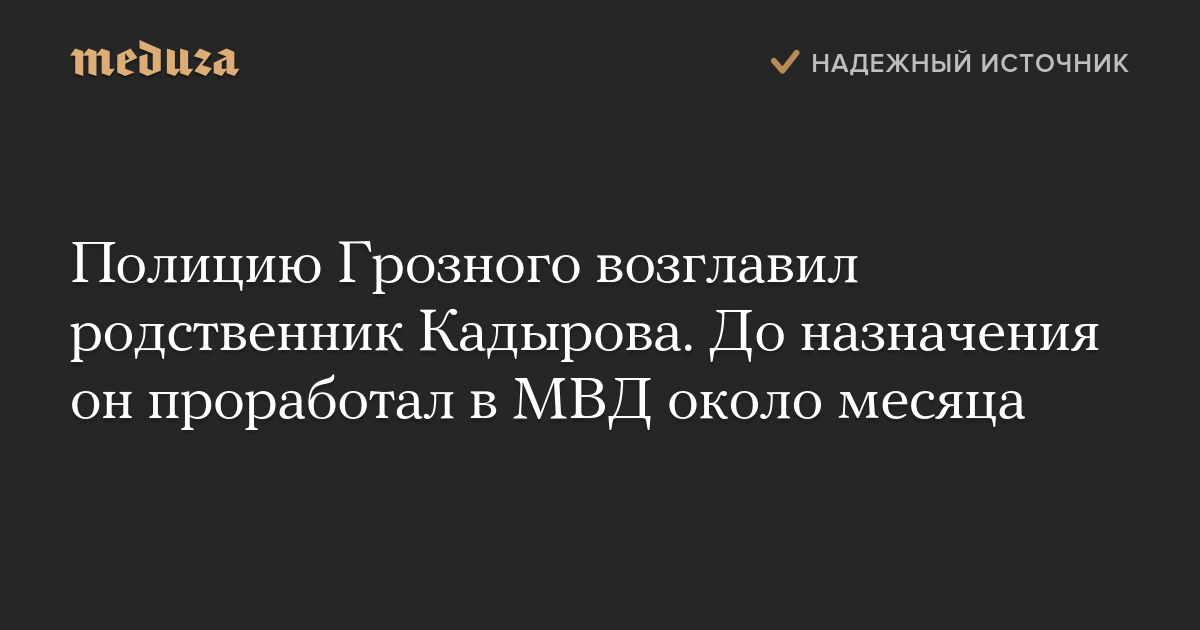 Полицию Грозного возглавил родственник Кадырова. До назначения он проработал в МВД около месяца