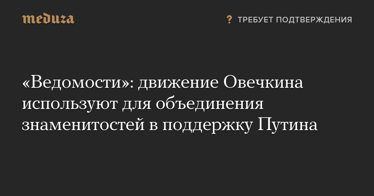 «Ведомости»: движение Овечкина используют для объединения знаменитостей в поддержку Путина