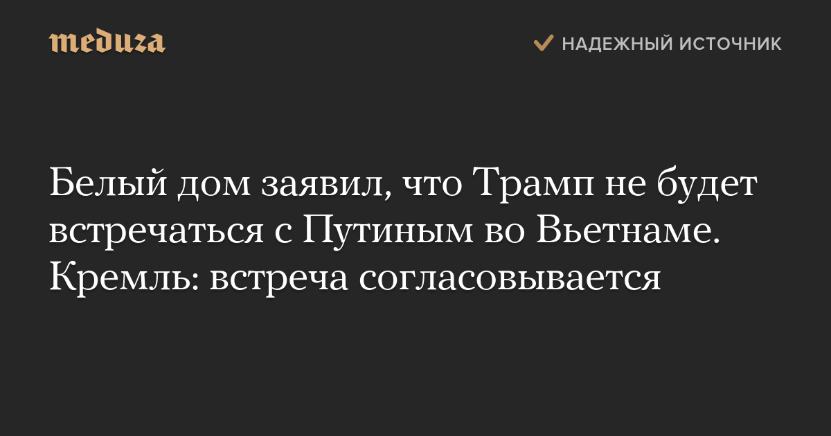 Белый дом заявил, что Трамп не будет встречаться с Путиным во Вьетнаме. Кремль: встреча согласовывается