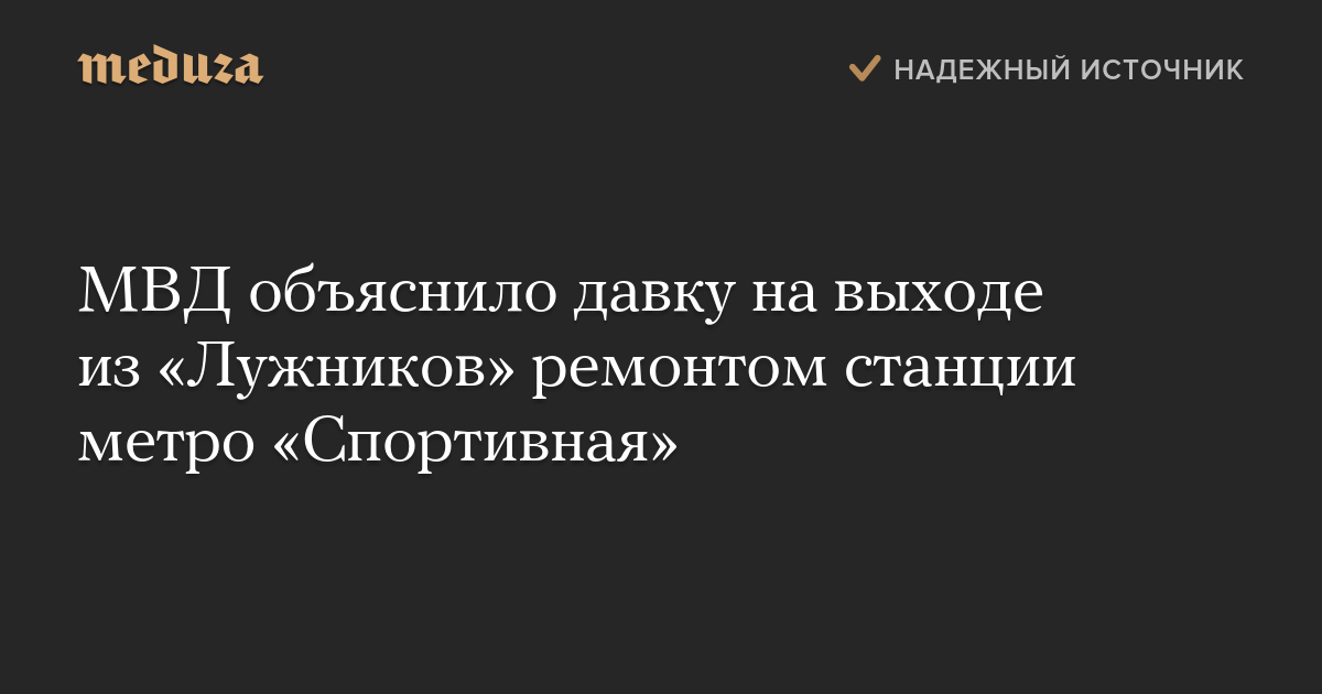 МВД объяснило давку на выходе из «Лужников» ремонтом станции метро «Спортивная»
