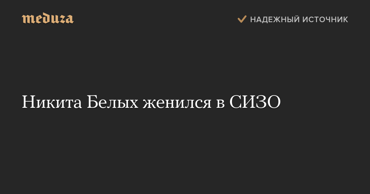 Бывший губернатор Кировской области Никита Белых, находящийся под арестом, женился на Екатерине Рейферт. О заключении брака сообщил «Интерфаксу» адвокат Белых Андрей Грохотов.