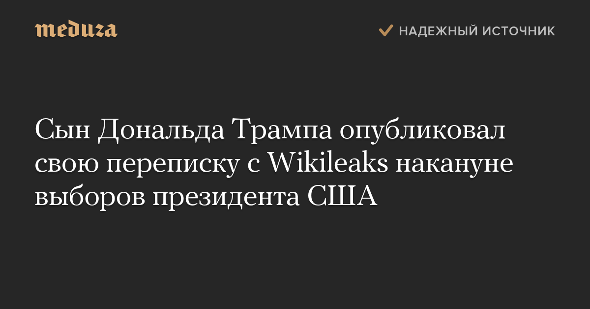 Сын Дональда Трампа опубликовал свою переписку с Wikileaks накануне выборов президента США
