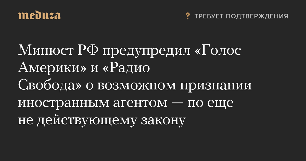 Минюст РФ предупредил «Голос Америки» и «Радио Свобода» о возможном признании иностранным агентом — по еще не действующему закону
