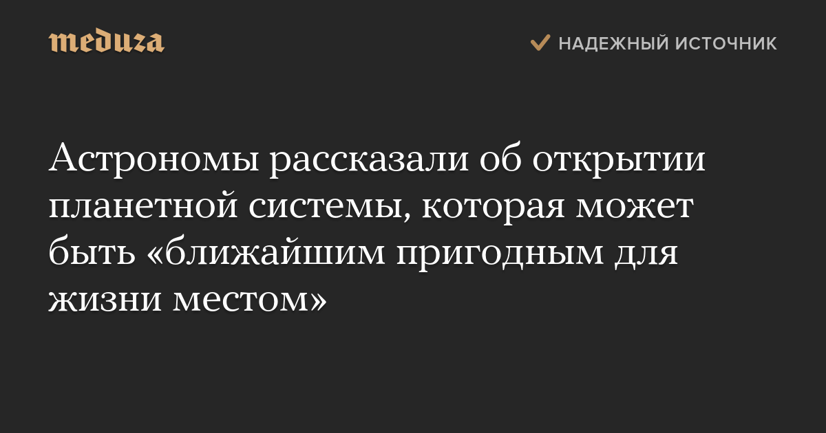 Астрономы рассказали об открытии планетной системы, которая может быть «ближайшим пригодным для жизни местом»