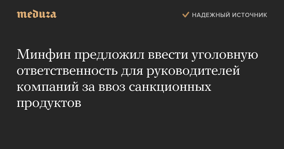 Минфин предложил ввести уголовную ответственность для руководителей компаний за ввоз санкционных продуктов