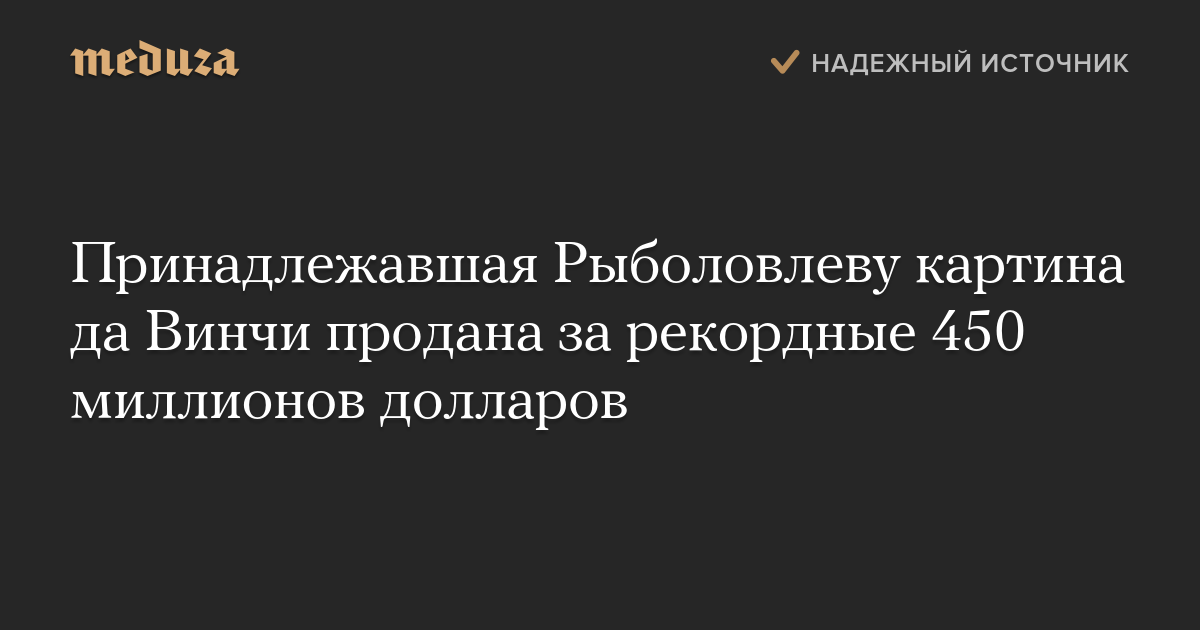 Принадлежавшая Рыболовлеву картина да Винчи продана за рекордные 450 миллионов долларов