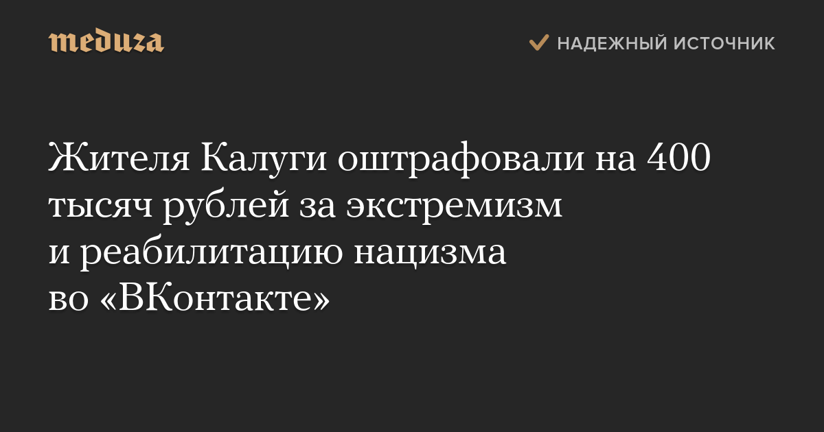 Жителя Калуги оштрафовали на 400 тысяч рублей за экстремизм и реабилитацию нацизма во «ВКонтакте»