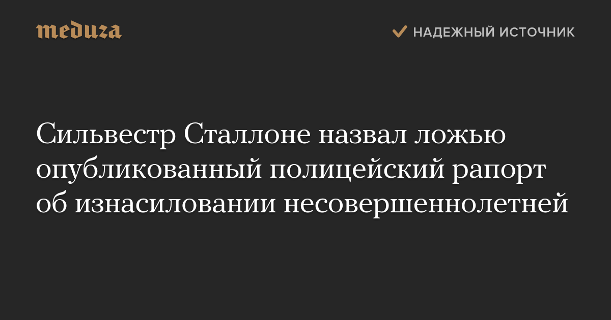 Актер Сильвестр Сталлоне назвал «категорически ложными» публикации о том, что он якобы принудил несовершеннолетнюю девушку к групповому сексу в 1986 году. Заявление актер передал через своих представителей.