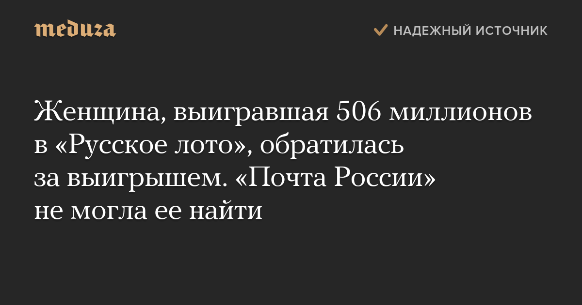 Женщина, выигравшая 506 миллионов в «Русское лото», обратилась за выигрышем. «Почта России» не могла ее найти