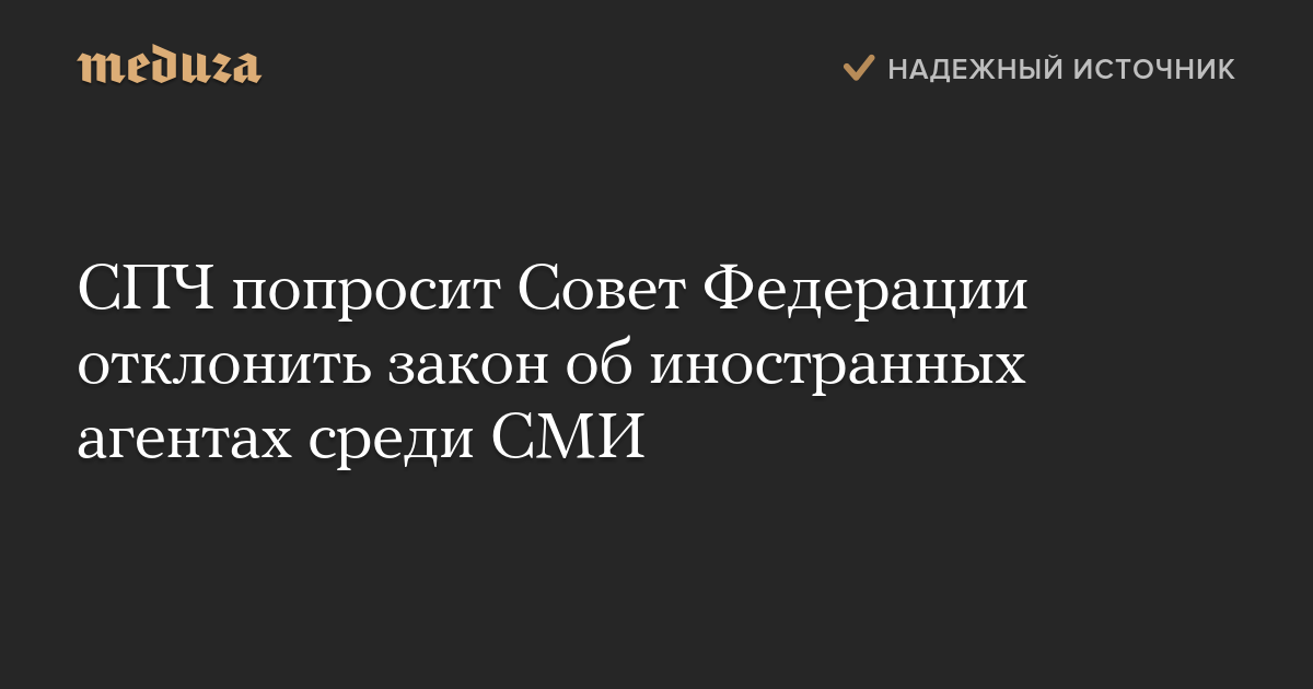 СПЧ попросит Совет Федерации отклонить закон об иностранных агентах среди СМИ
